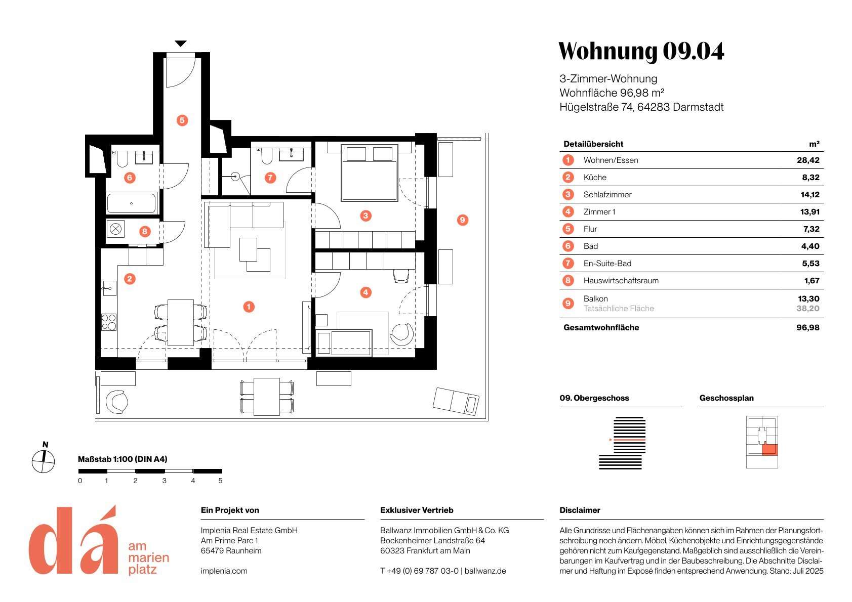Die Wohnungen bieten helle, offene Räume, großzügige Außenflächen und Ausblicke, die bis in den Odenwald oder Frankfurts Skyline reichen. Zusätzlich steht den Bewohnern eine gemeinschaftliche Dachterrasse mit Loungebereich zur Verfügung – die perfekten Orte für Entspannung und Begegnung.