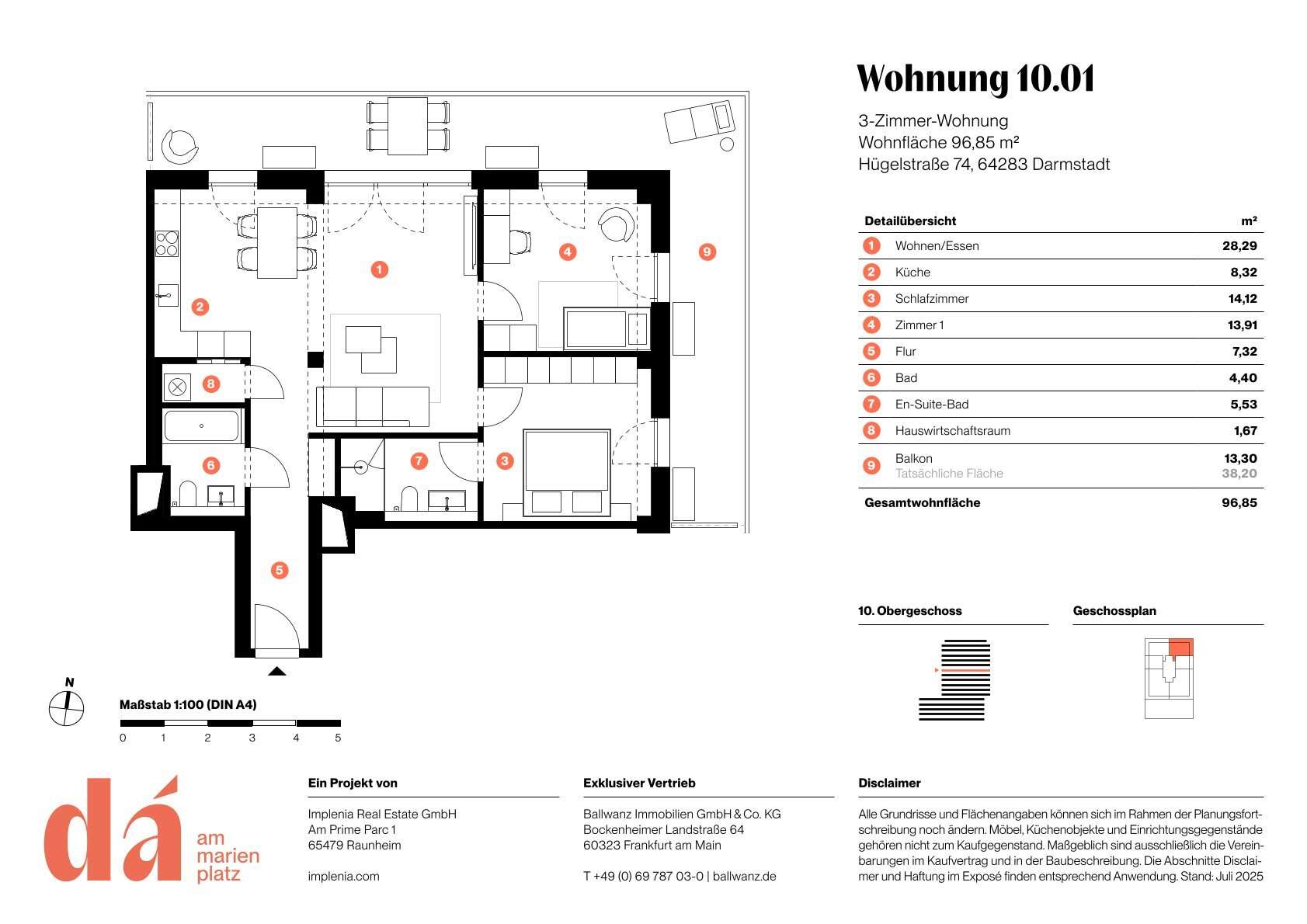 Die Wohnungen bieten helle, offene Räume, großzügige Außenflächen und Ausblicke, die bis in den Odenwald oder Frankfurts Skyline reichen. Zusätzlich steht den Bewohnern eine gemeinschaftliche Dachterrasse mit Loungebereich zur Verfügung – die perfekten Orte für Entspannung und Begegnung.
