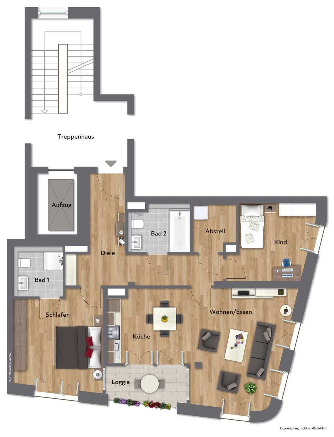 - Aufzug mit direktem Zugang ins Untergeschoss zu den Stellplätzen und Kellerräumen