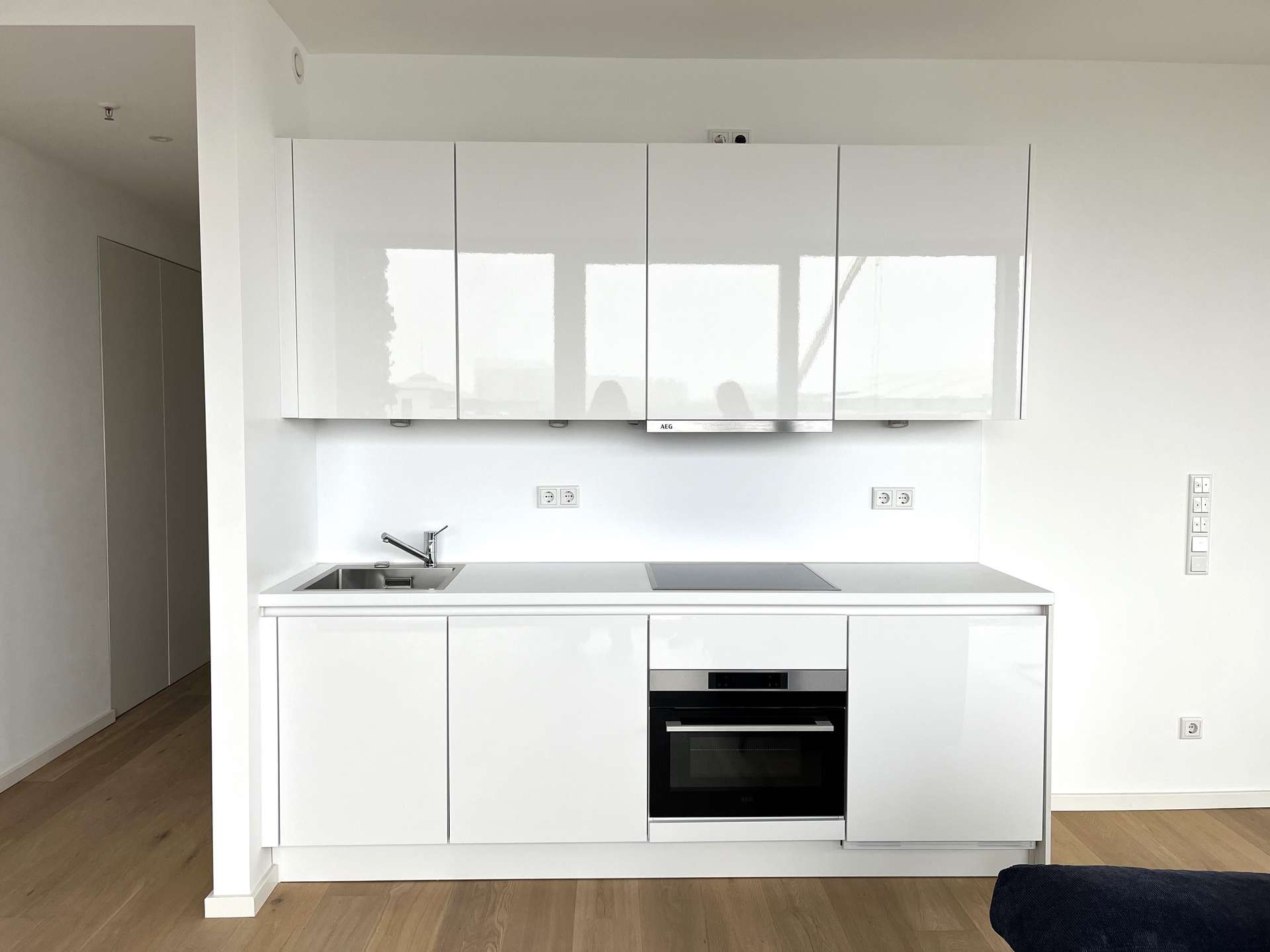 - Eine offene Einbauküche mit hochwertigen Markengeräten