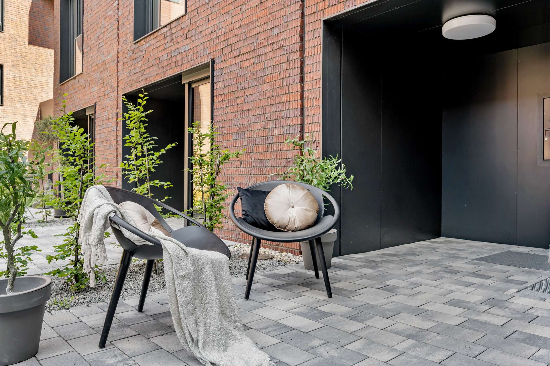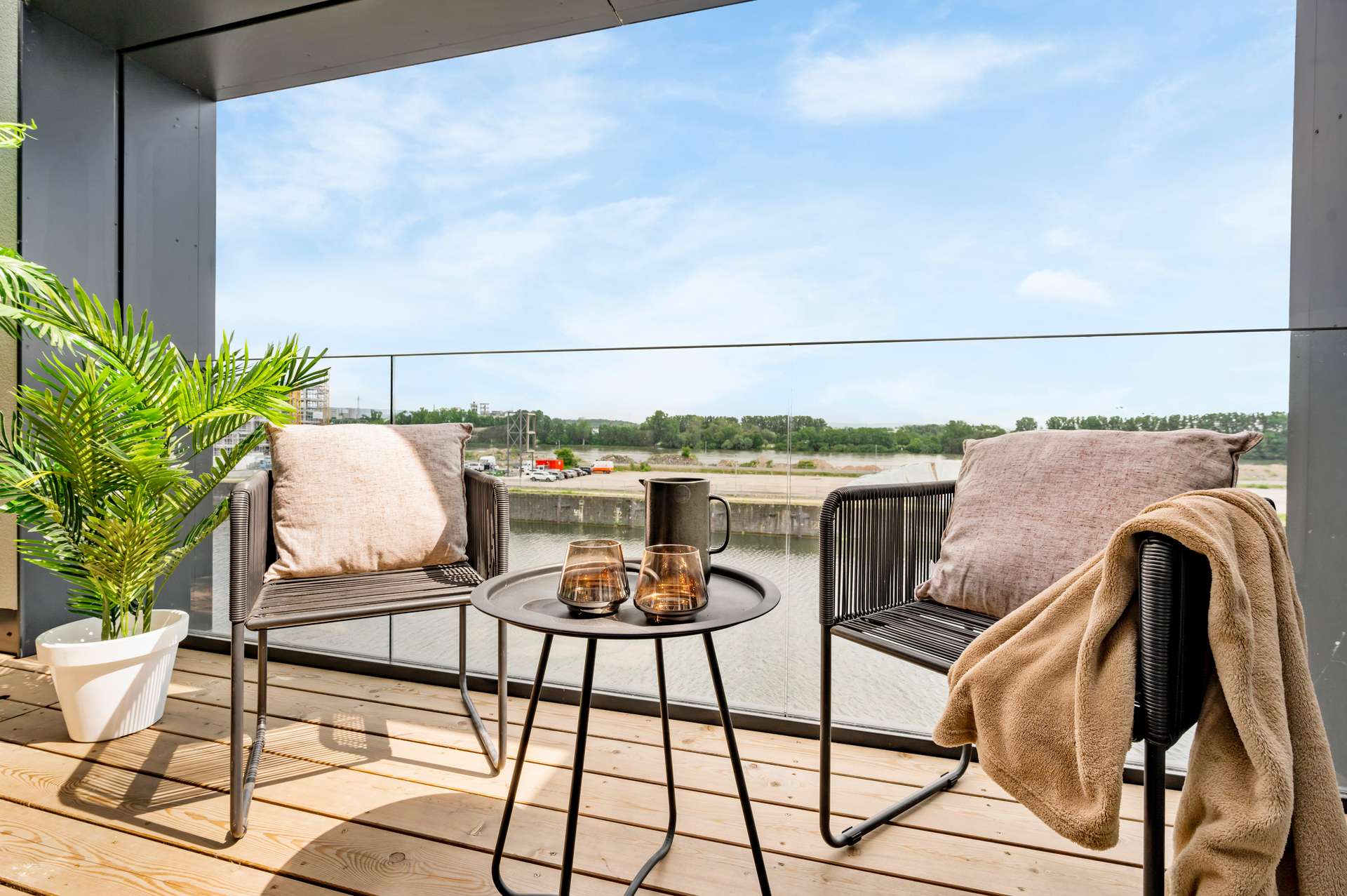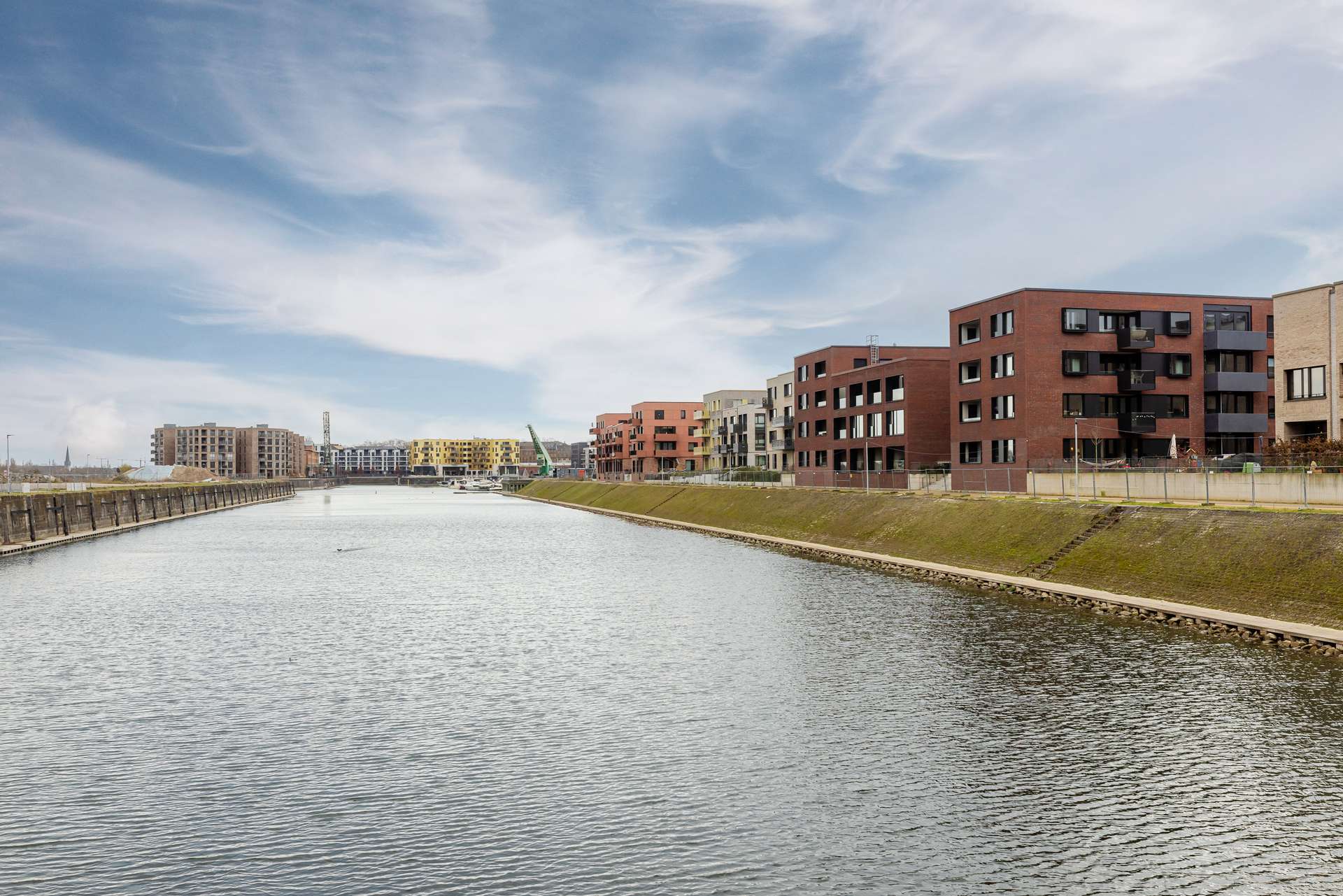 Durchdachte Architektur trifft auf zeitloses Design: Balkone, Loggien und Terrassen ermöglichen den direkten Blick aufs Wasser. Die hochwertige Backsteinfassade, nachhaltige Bauweise mit Fernwärme und begrünte Dächer schaffen ein Zuhause mit Charakter.