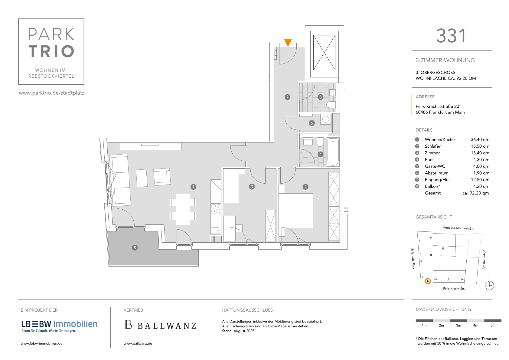 Familienfreundliche 3-Zimmer-Wohnung mit Balkon im PARK TRIO STADTPLATZ