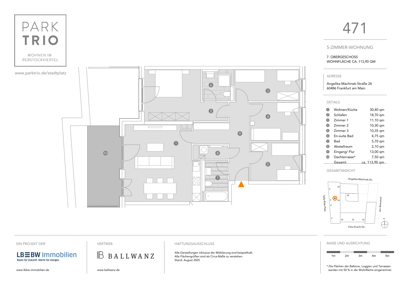 Familienfreundliche 5-Zimmer-Wohnung mit Dachterrasse am Rebstockpark