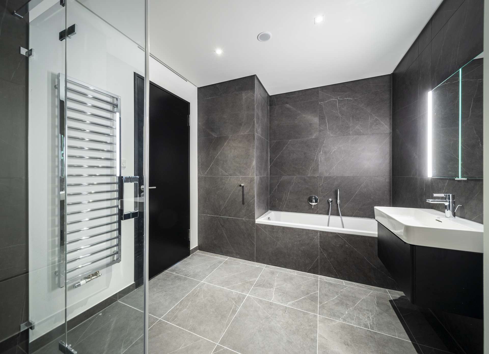 - Modernes Bad mit Badewanne und bodengleicher Dusche