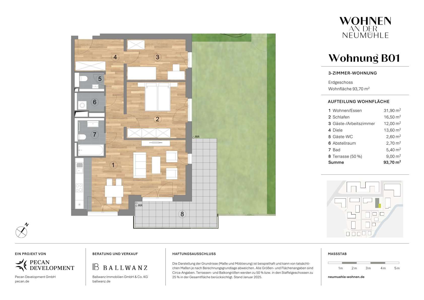 Energieeffizient und nachhaltig, verkehrsberuhigt, barrierefrei und mit großzügigen Gartengrundstücken: Das moderne Quartier formt ein Areal für alle Generationen: von Mietwohnungen bis Eigenheim, einer Berufsschule sowie Büro- und Gewerbeflächen.