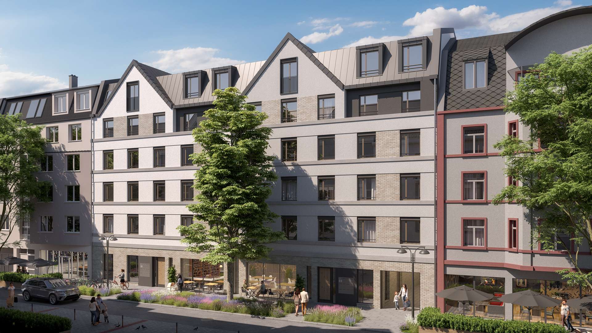 Im Herzen des Frankfurter Stadtteils Bornheim ist ein attraktives Wohnquartier entstanden, das moderne Eigentumswohnungen, eine Erasmus-Kindertagesstätte und einen Tegut-Supermarkt vereint.