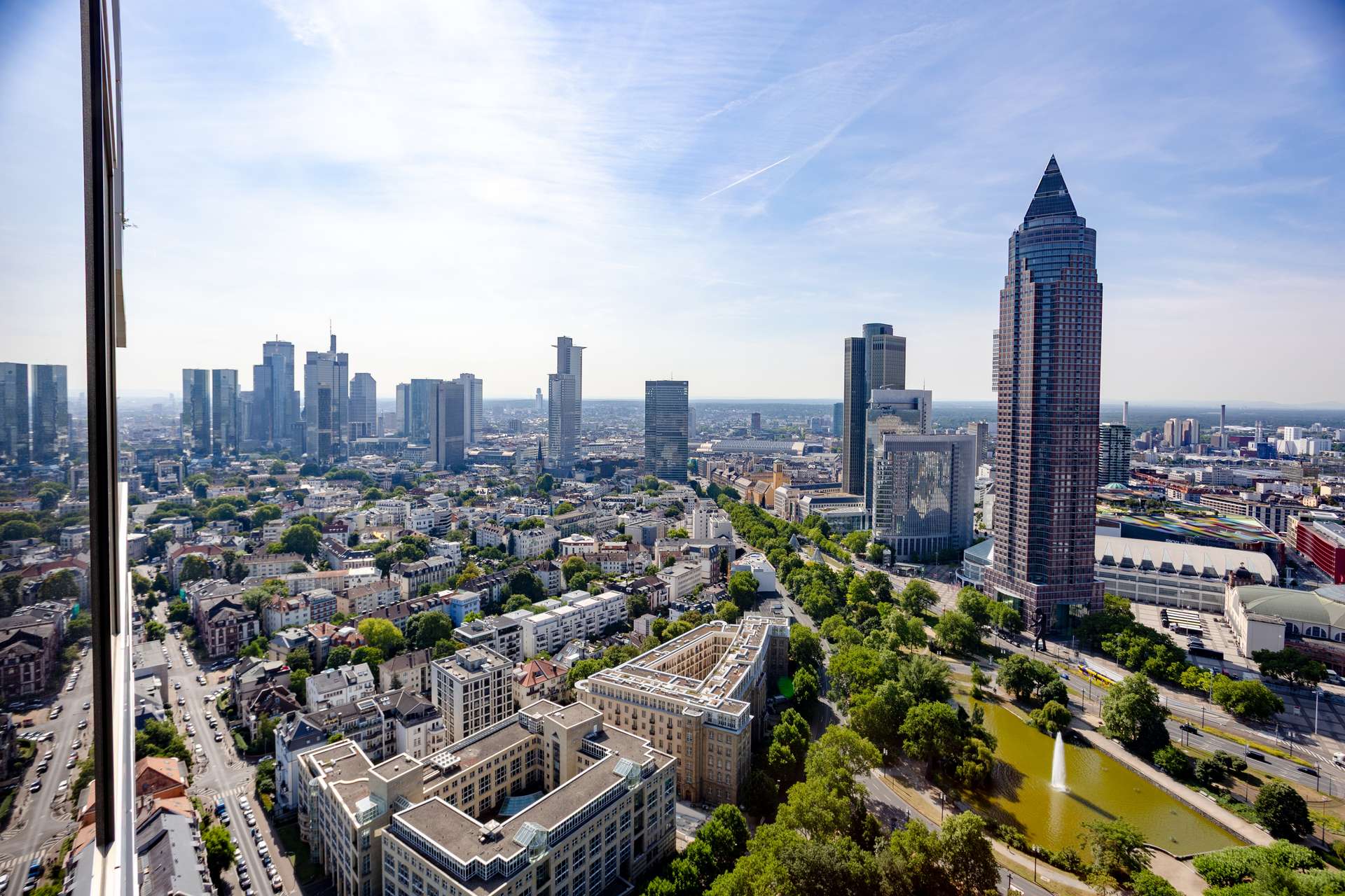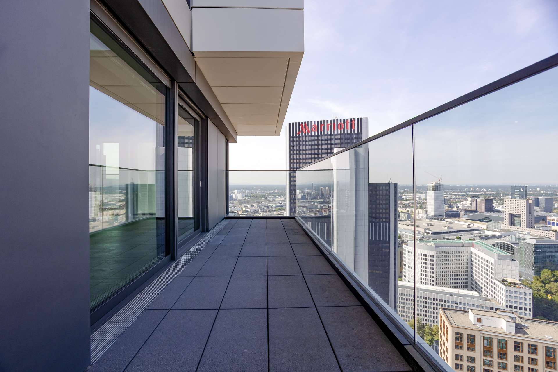 - Verglaster Außenbereich mit unverbautem Ausblick auf die Messe