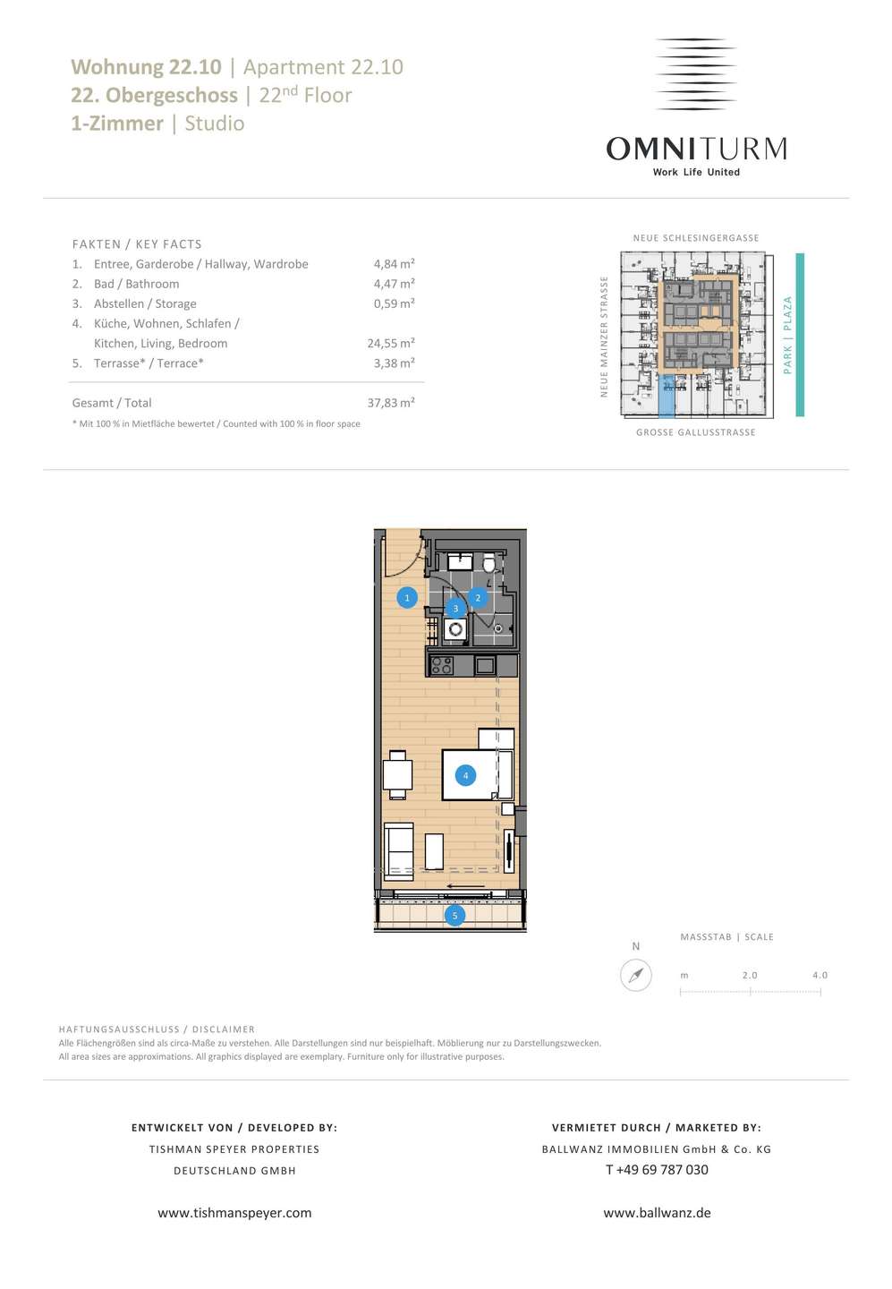IN THE HEART OF THE SKYLINE: 1-Zimmer-Wohnung mit EBK & Balkon