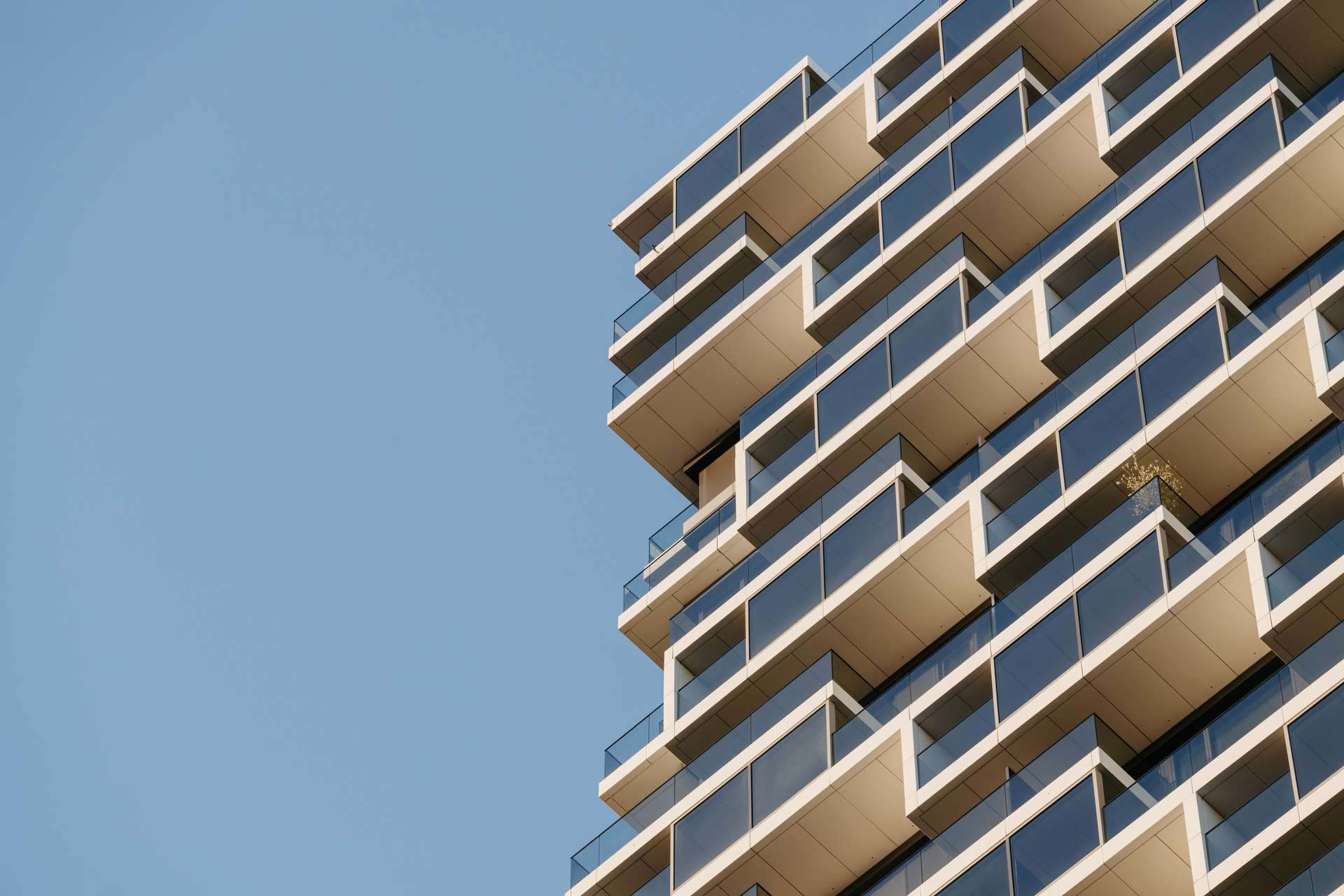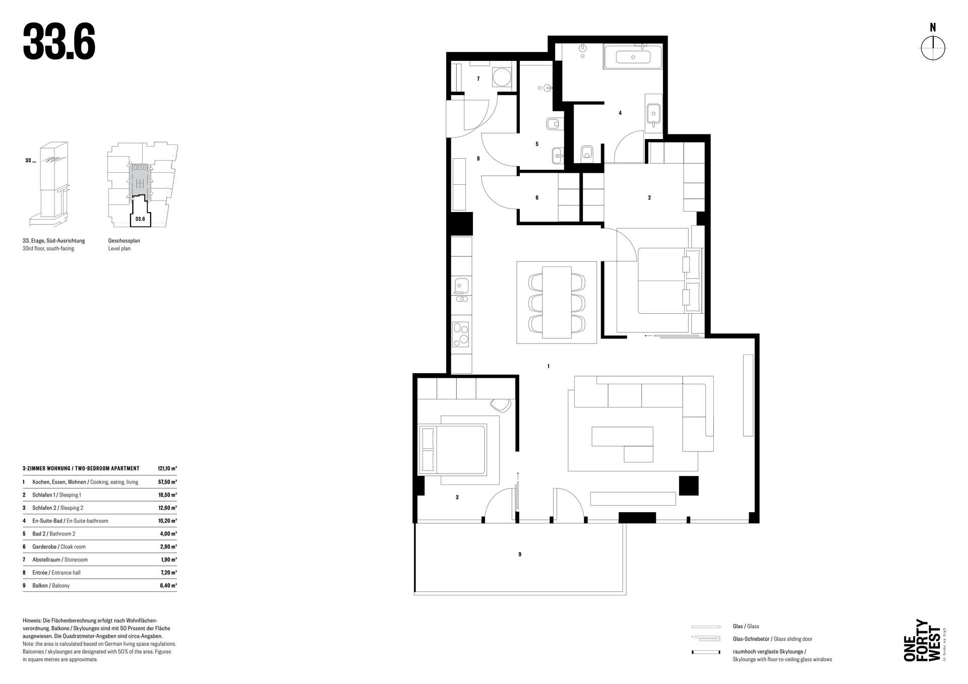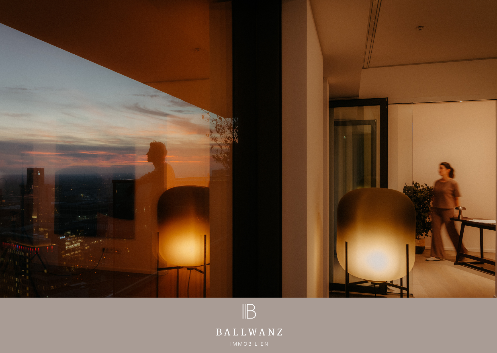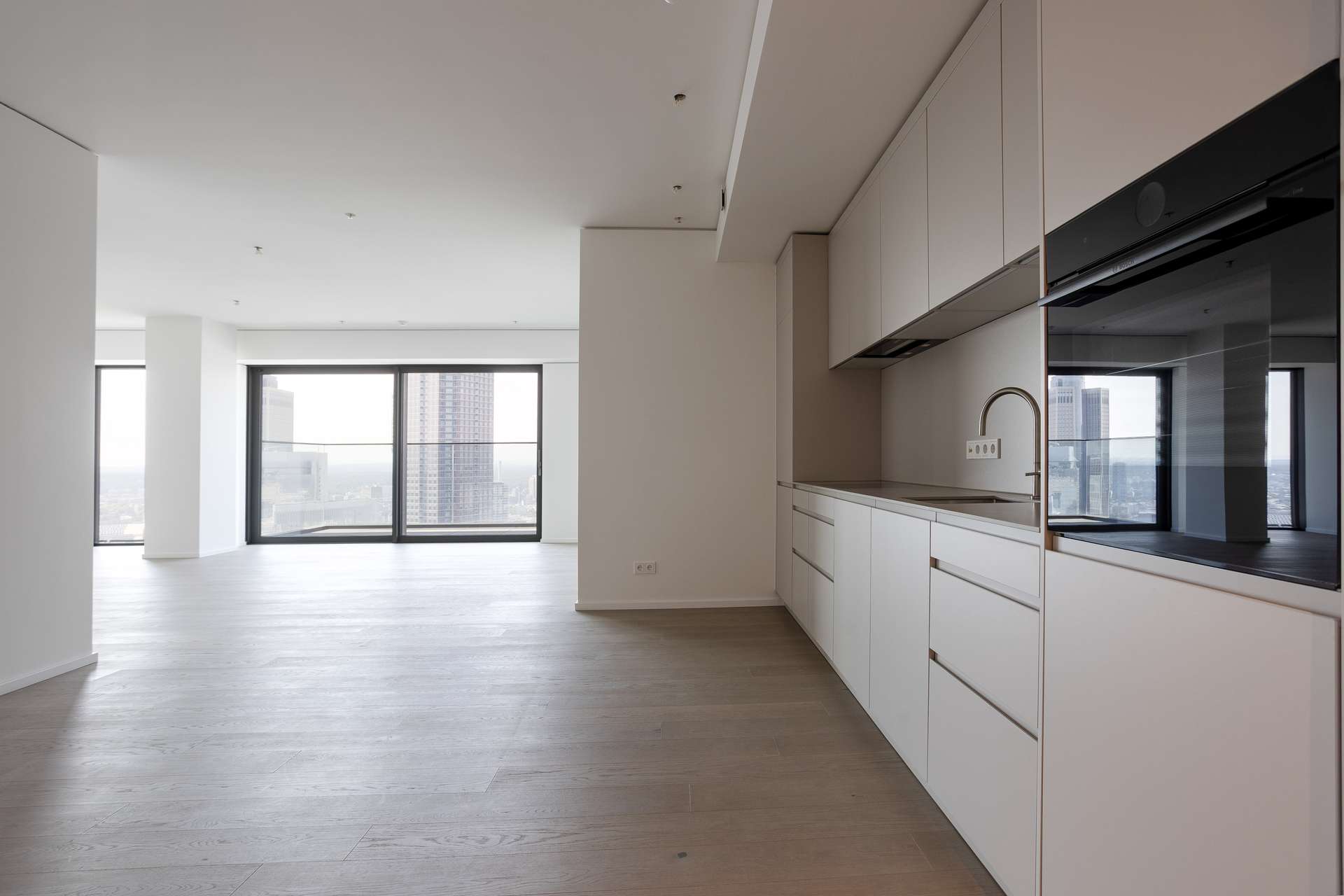 - Verglaster Außenbereich mit unverbautem Ausblick auf die Skyline und Messe