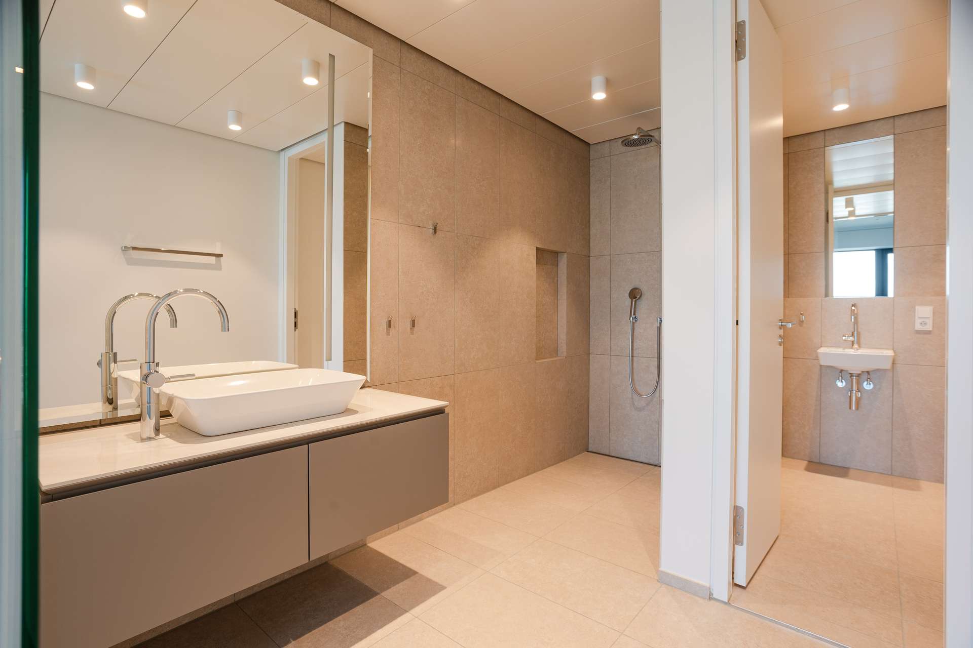 - Lichtdurchflutete Räume dank bodentiefer Fenster und natürlichem Tageslicht