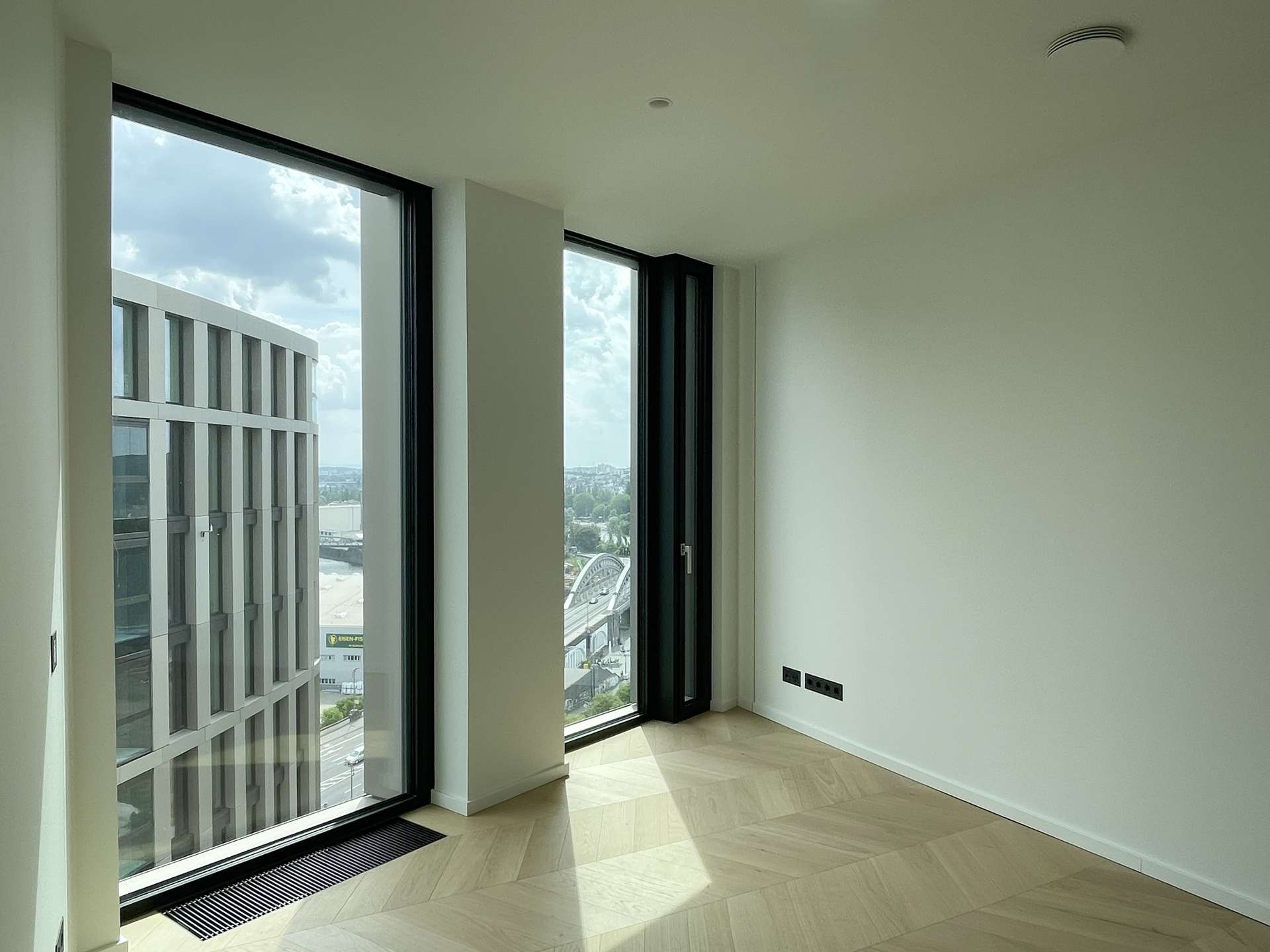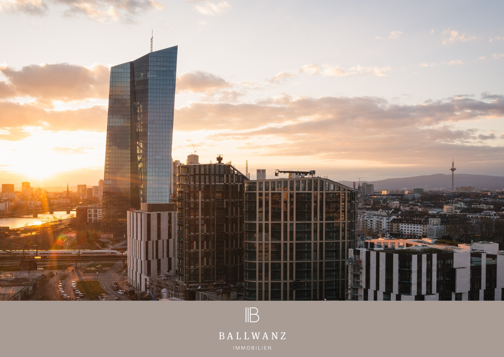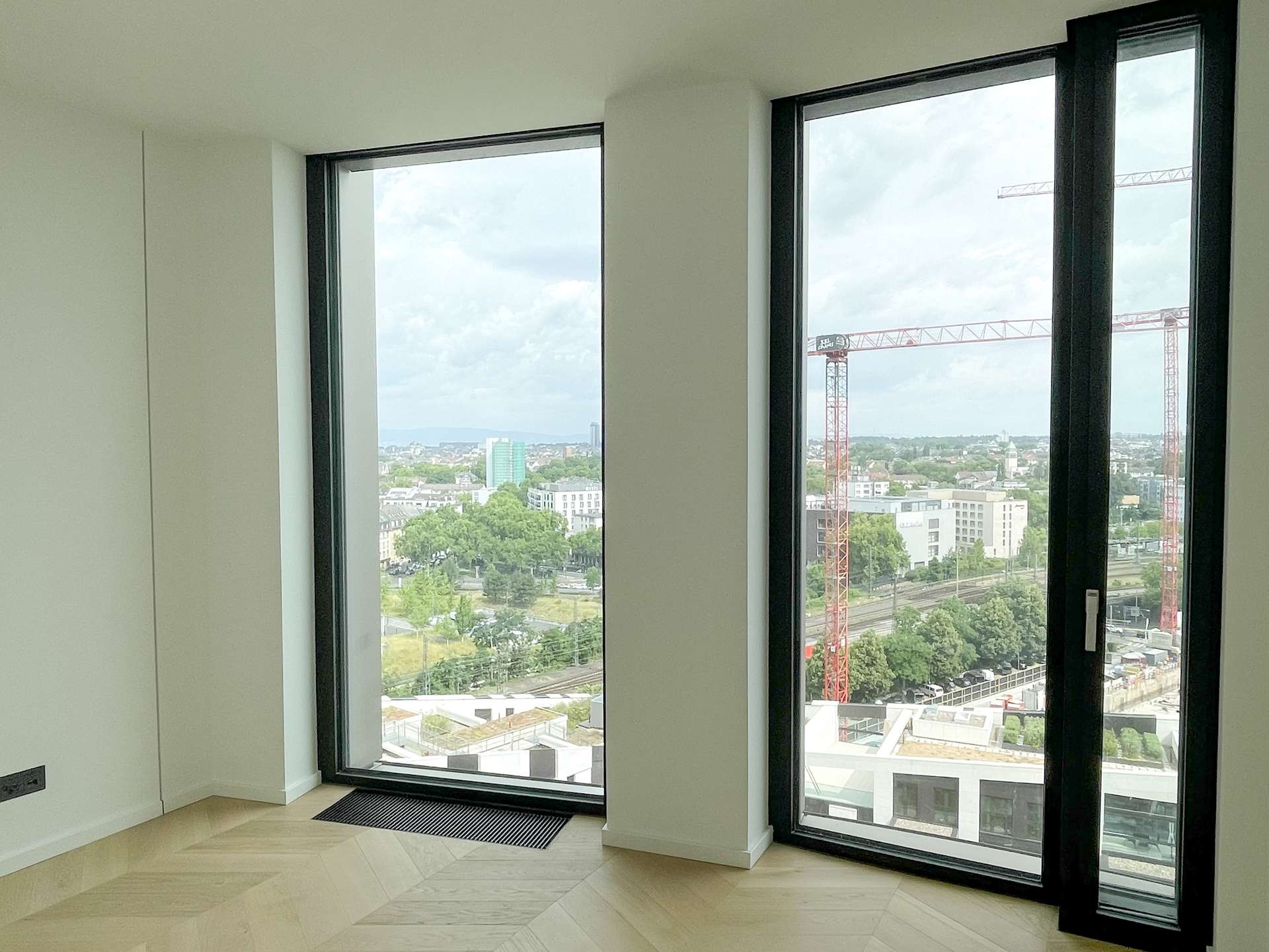 Für ein Wohngefühl, das ohnegleichen ist, sorgt der großzügige Wohn- und Essbereiche mit Blick zur Skyline und den Taunus. Für lichtdurchflutete Räume und abwechslungsreiche Perspektiven auf Frankfurt und den Main sorgen die bodentiefen Fenster und die eingelassene Loggia.