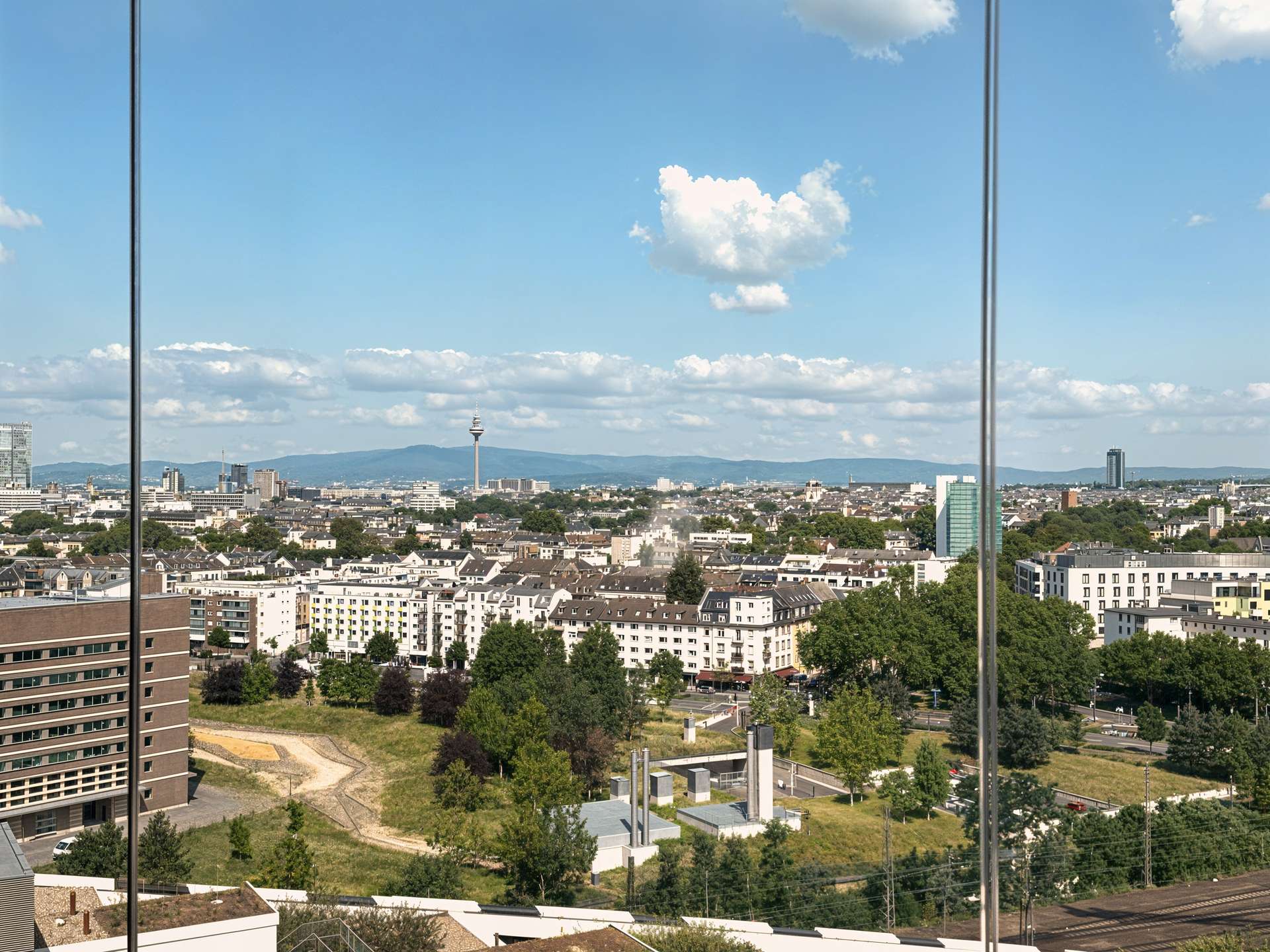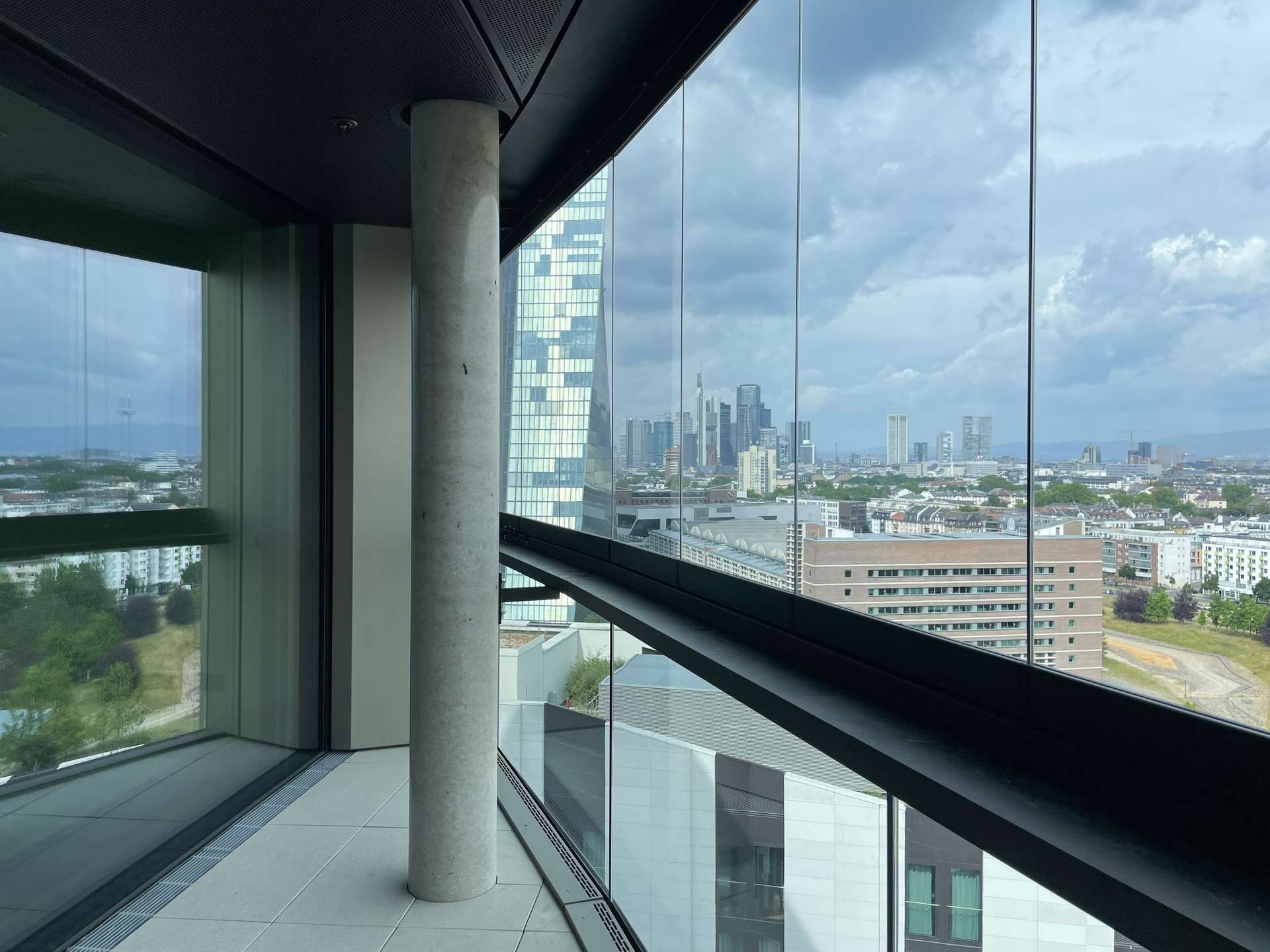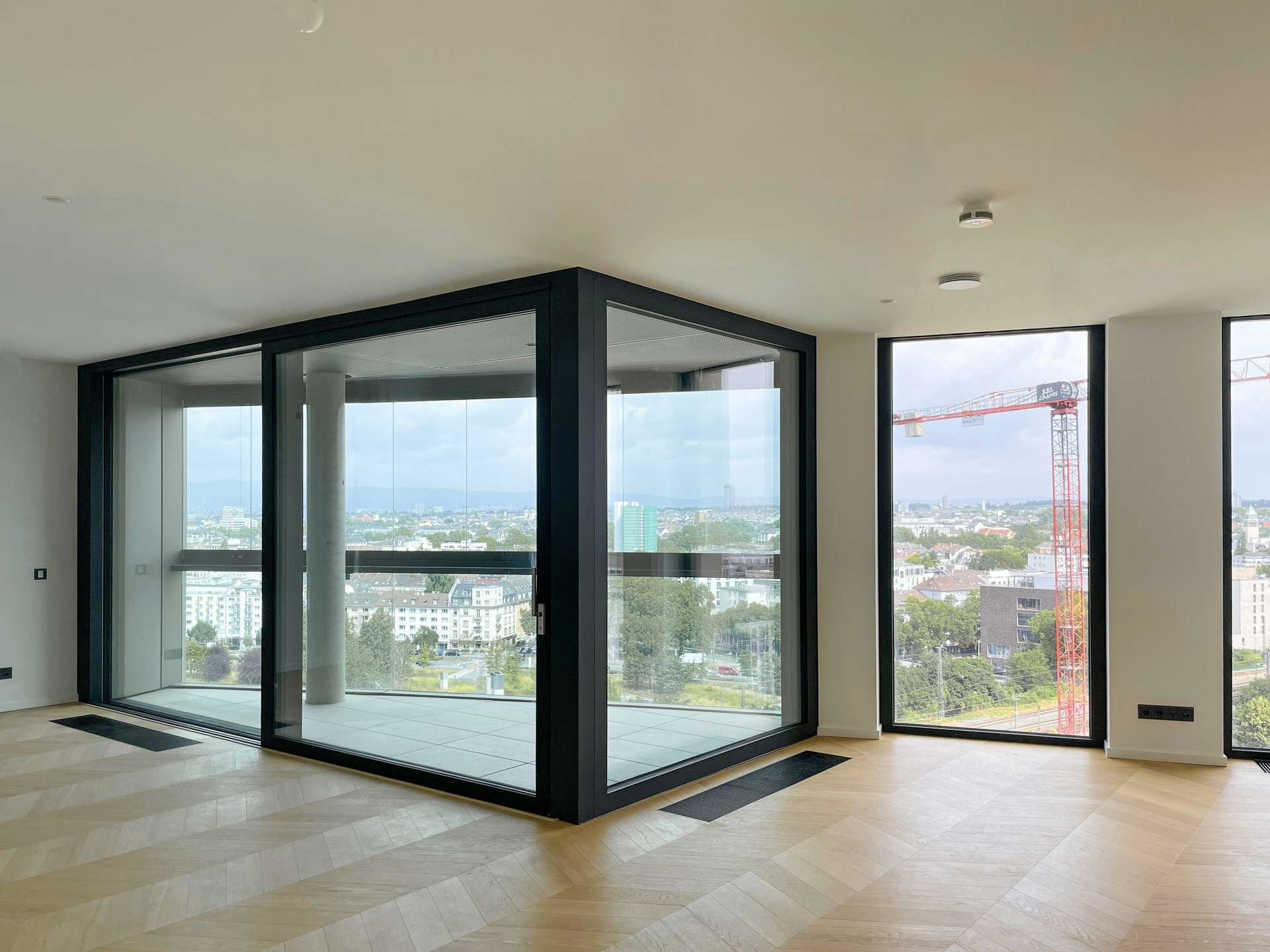 Für ein Wohngefühl, das ohnegleichen ist, sorgt der großzügige Wohn- und Essbereiche mit Blick zur Skyline und den Taunus. Für lichtdurchflutete Räume und abwechslungsreiche Perspektiven auf Frankfurt und den Main sorgen die bodentiefen Fenster und die eingelassene Loggia.