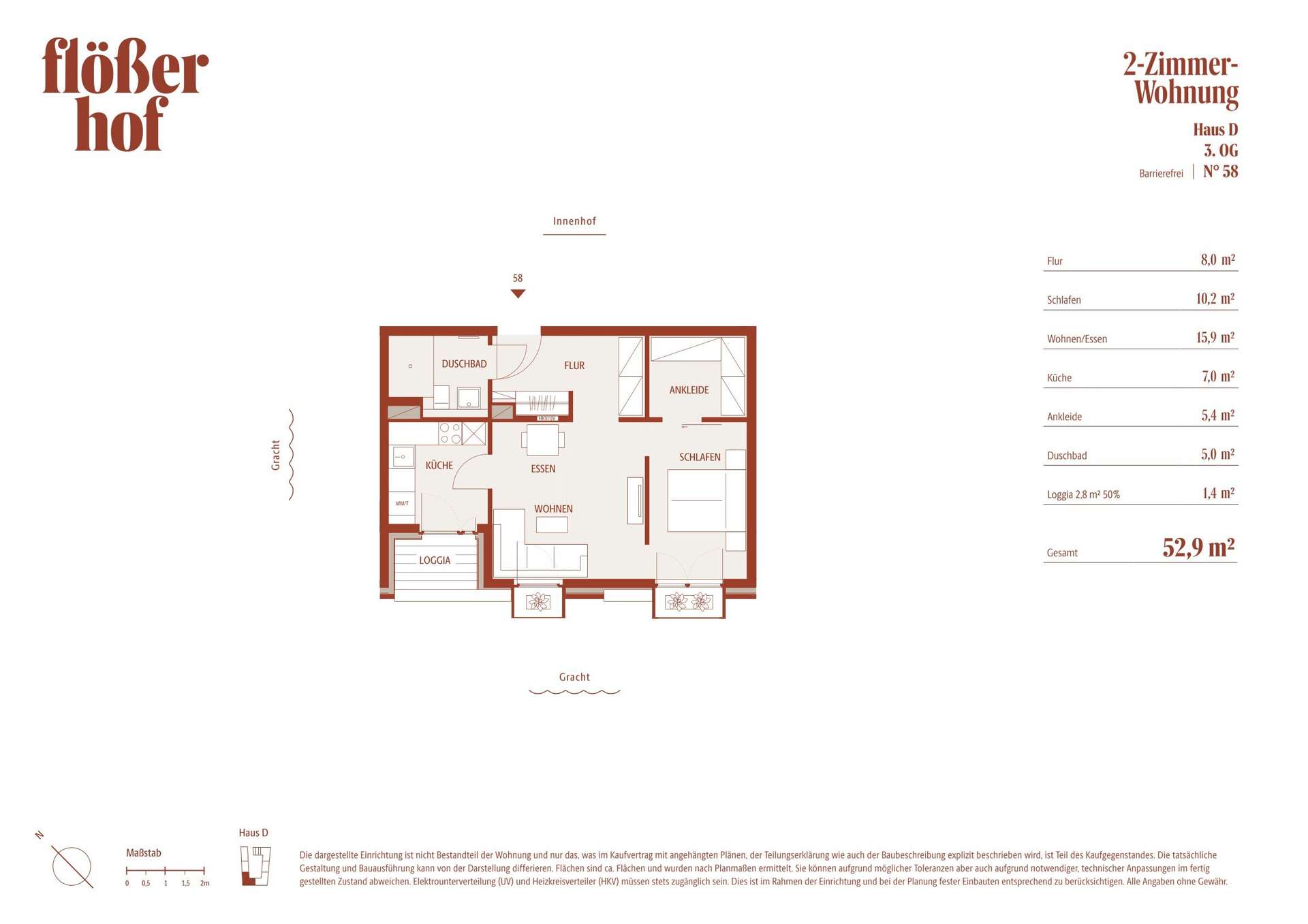 Mit 92 Wohneinheiten – vom smarten Studio bis zum großzügigen Hafenhaus – bietet der Flößerhof Wohnraum für Singles, Paare und Familien. 14 Wohnungen sind barrierefrei, neun rollstuhlgerecht, und jede Einheit verfügt über eine private Außenfläche. Eine verkehrsfreie Umgebung mit Tiefgarage und Fahrradstellplätzen verbindet urbanen Komfort mit einzigartiger Lage am Wasser.