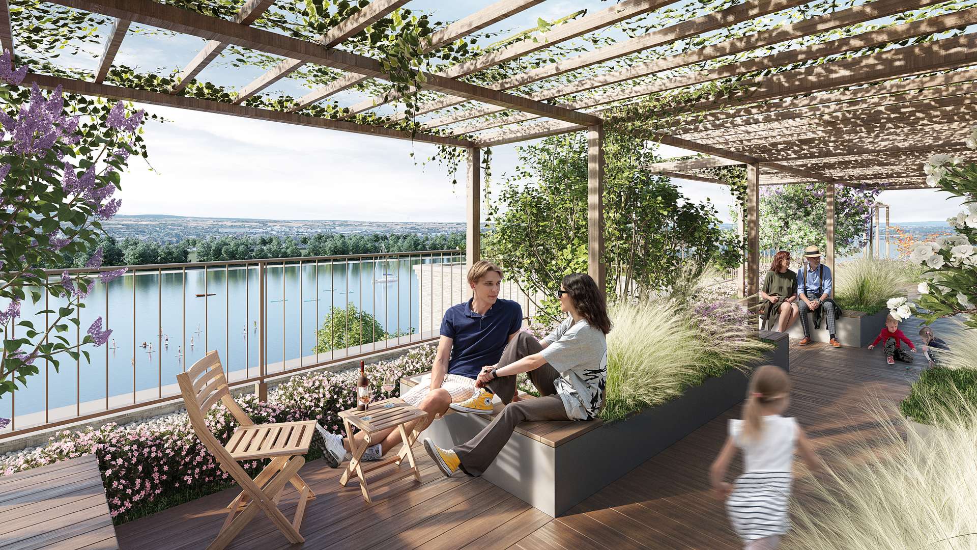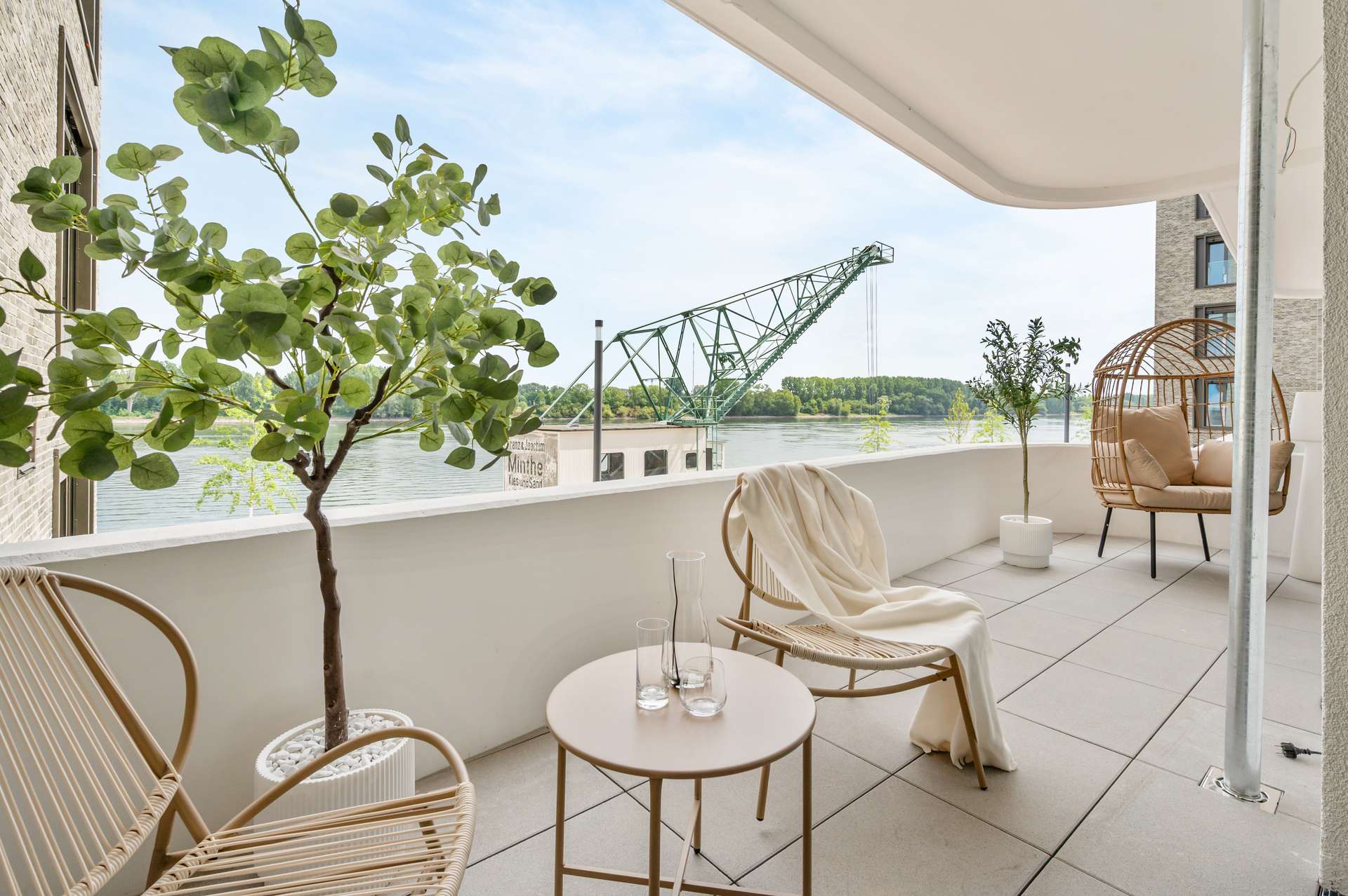 Geplant vom renommierten Büro happarchitecture, spiegelt das Ensemble mit seiner offenen, fließenden Form die Nähe zum Wasser wider. Graugrüner Klinker, weiße Putzfassaden und wellenförmig gestaltete Balkone verleihen Havn einen markanten, modernen Charakter. Der begrünte Innenhof und der gemeinschaftliche Dachgarten mit Rheinblick bieten Raum für Rückzug, Begegnung und Erholung – mitten in der Stadt.