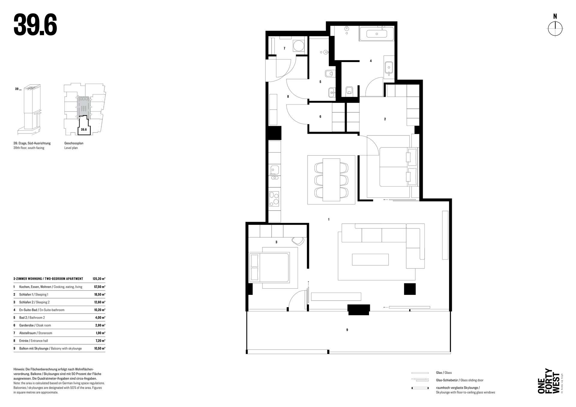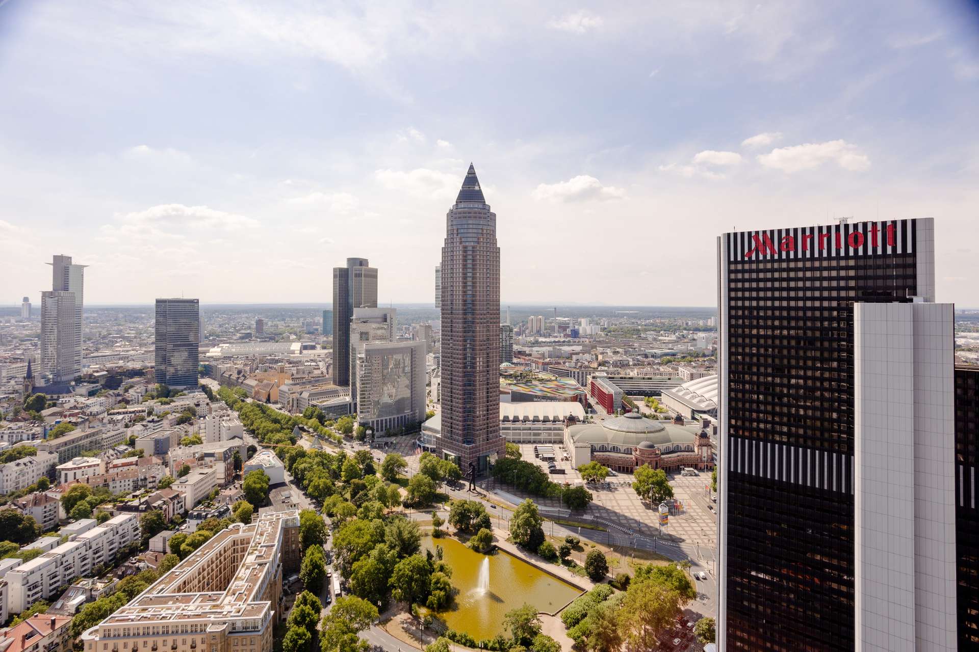 - Verglaster Außenbereich mit unverbautem Ausblick auf die Skyline und Messe