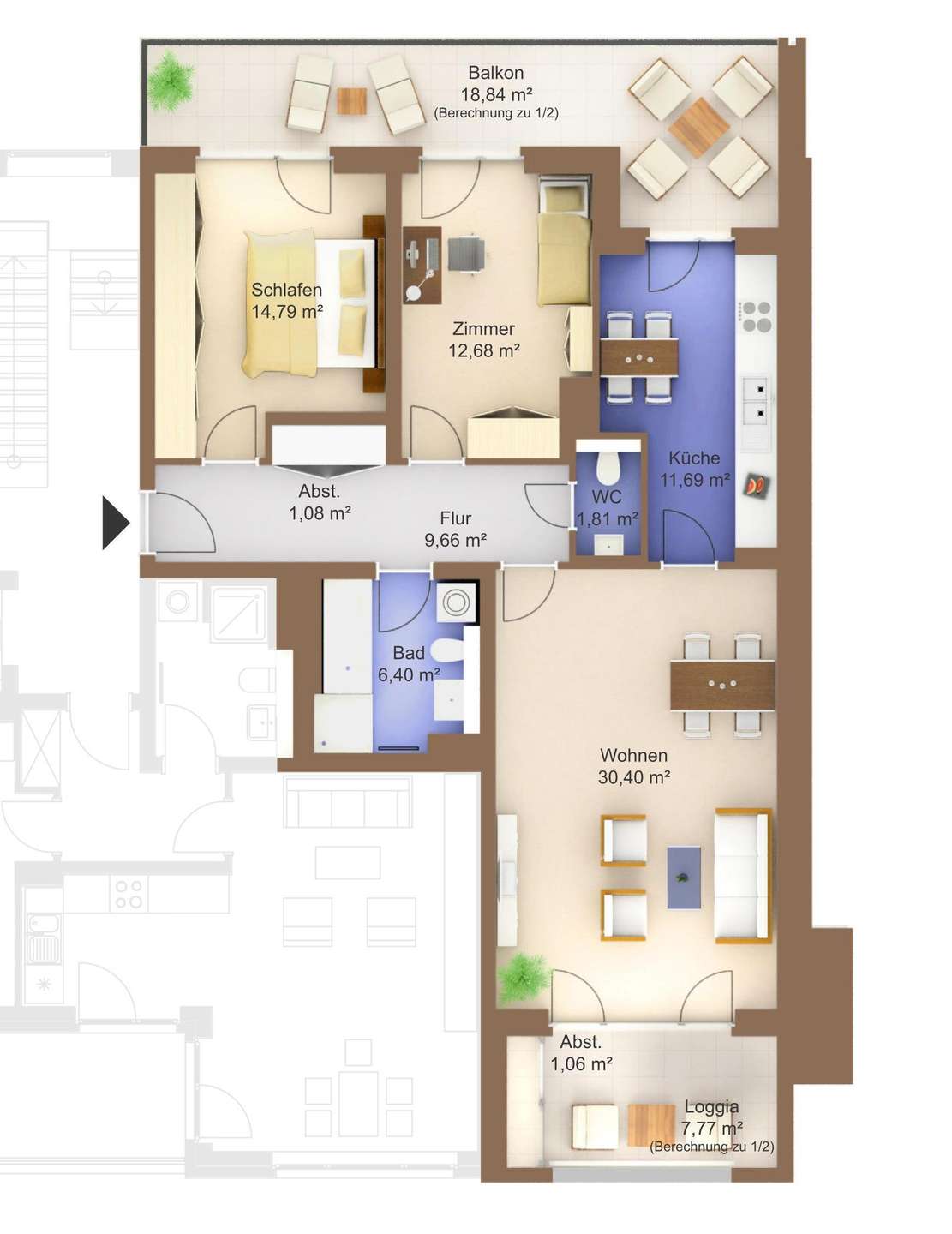 Diese 3-Zimmer-Wohnung auf rund 103 m² verfügt über eine komfortable und zeitlose Gesamtausstattung: