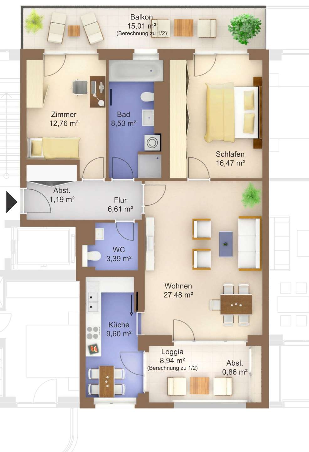 Diese 3-Zimmer-Wohnung auf rund 99 m² verfügt über eine komfortable und zeitlose Gesamtausstattung: