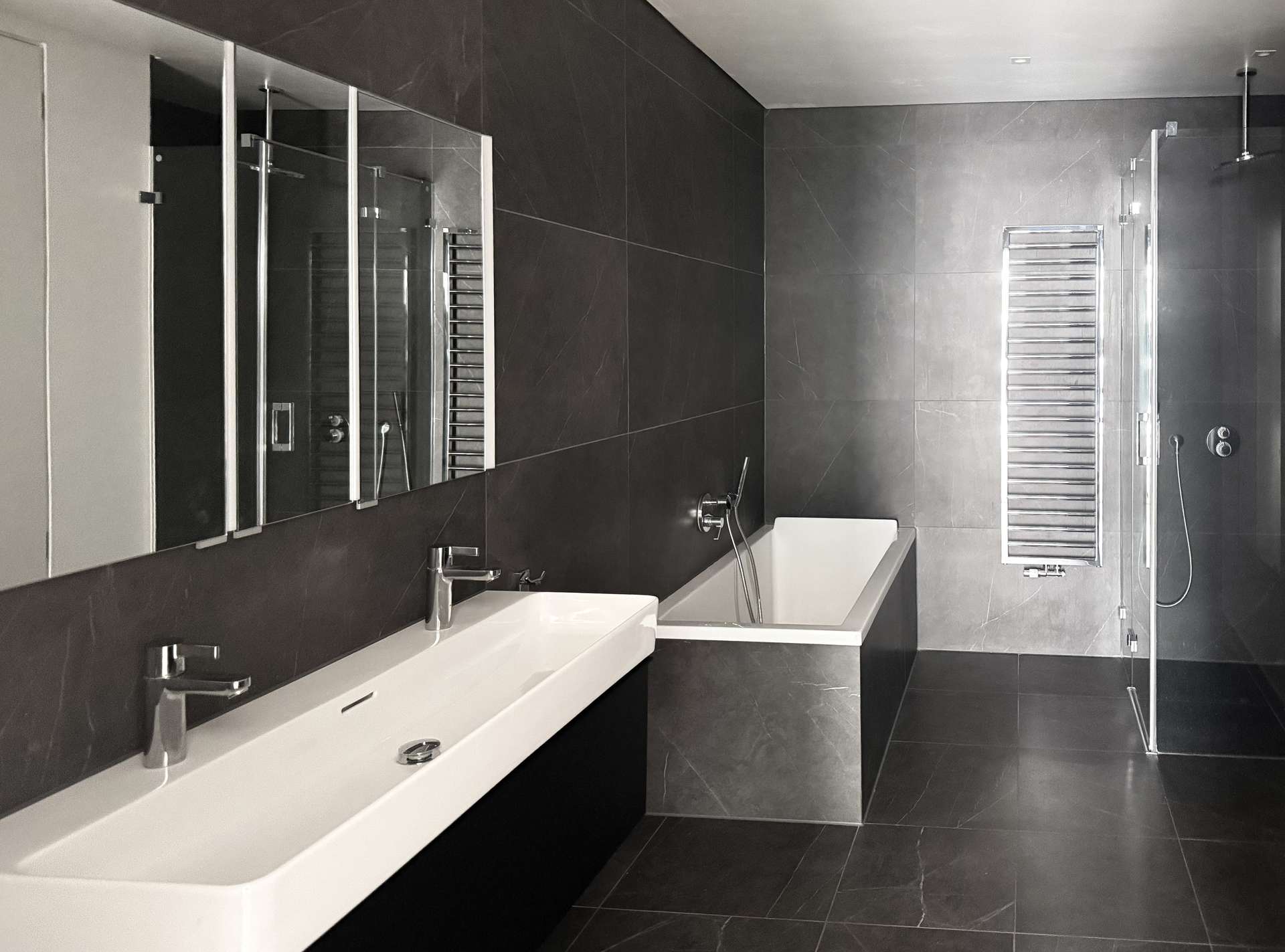 - Modernes Bad mit Badewanne und bodengleicher Dusche