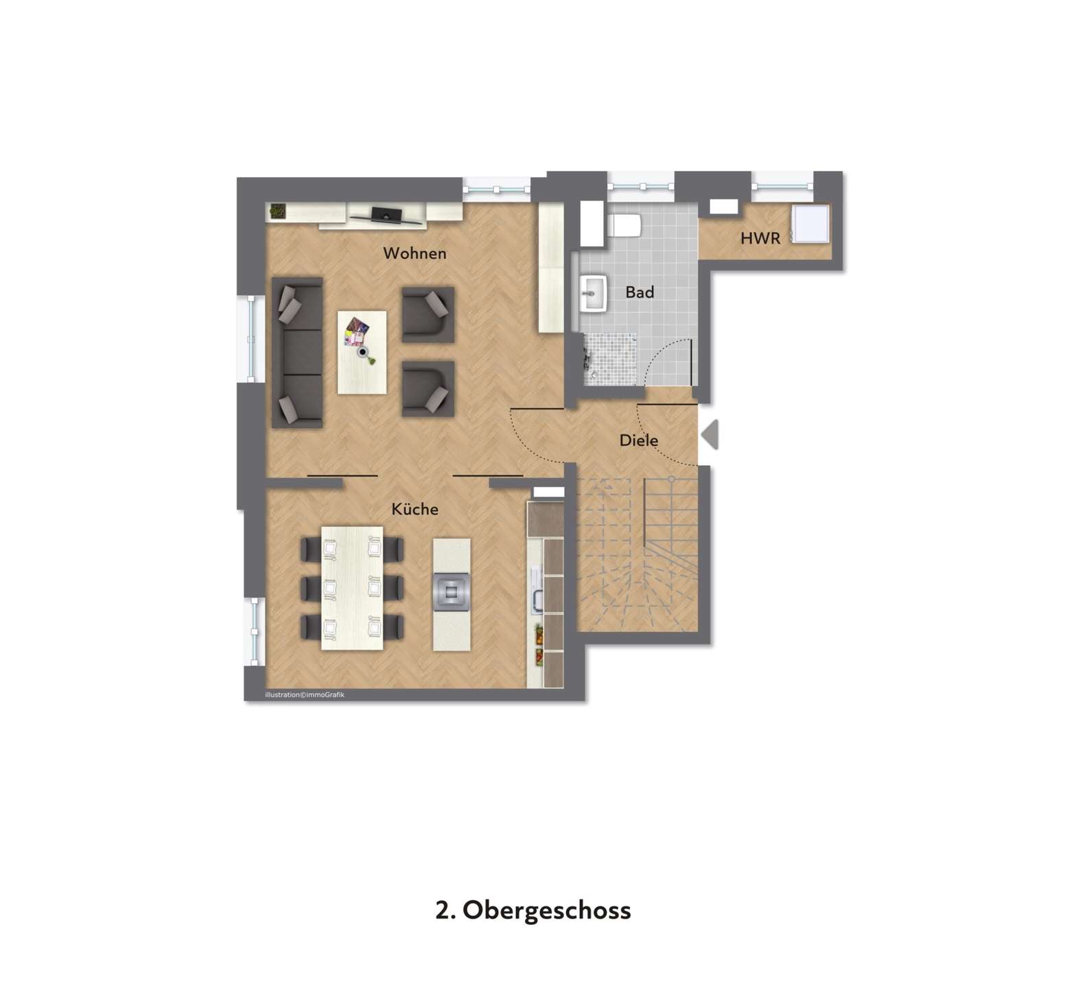 - Besonderes Kocherlebnis durch den Blick von der Galerie in die Küche